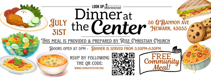 Come break bread with us for the Dinner at the Center! In partnership with Rise Christian Church, we are so excited about this next meal event that was a long-standing tradition for the Look Up Center.