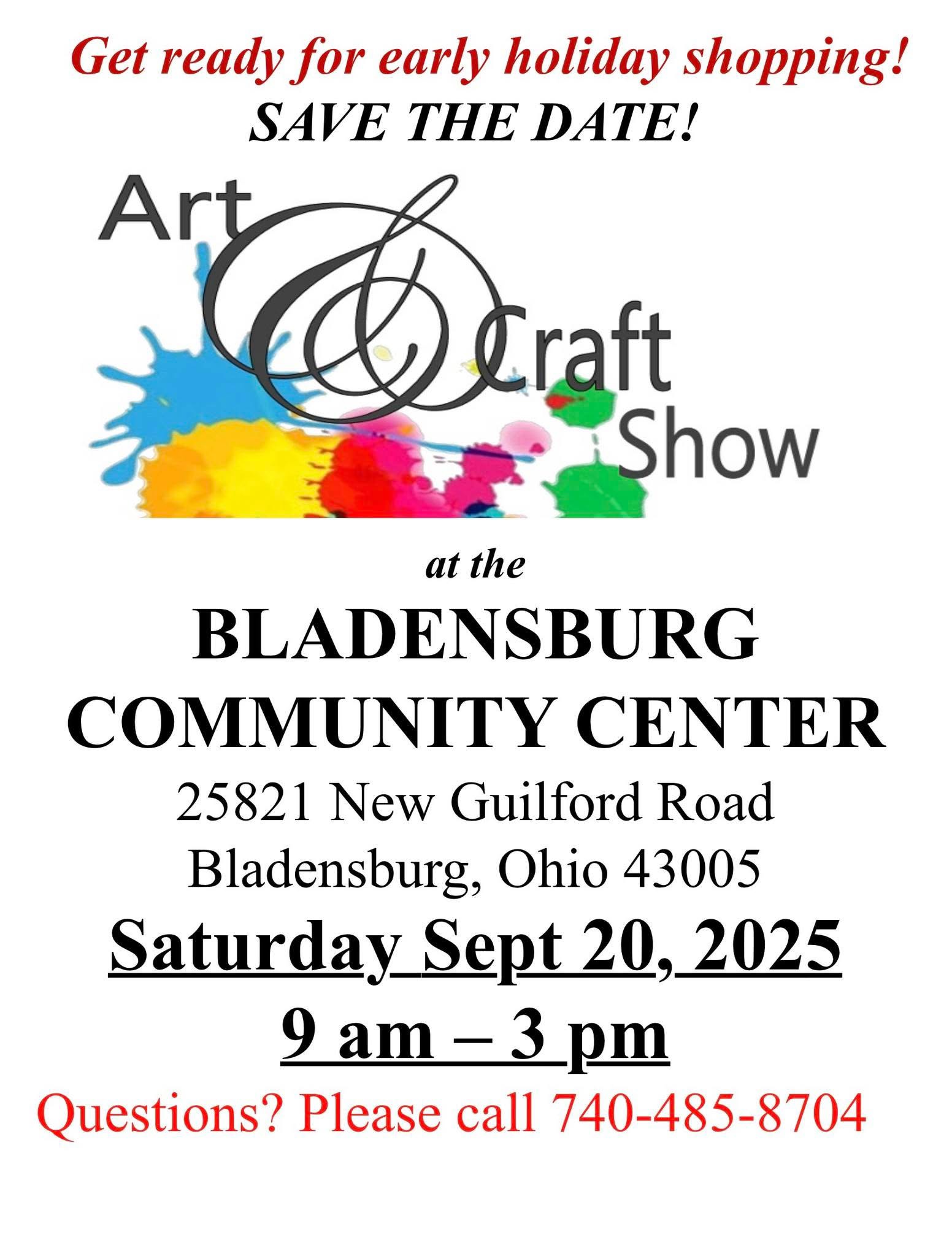 The Bladensburg Community Center in Bladensburg Ohio is sponsoring its annual Art & Craft Show on Saturday, September 20 from 9 AM to 3 PM. This year’s show will feature an exciting lineup of artist, crafters, and creators from across the region.