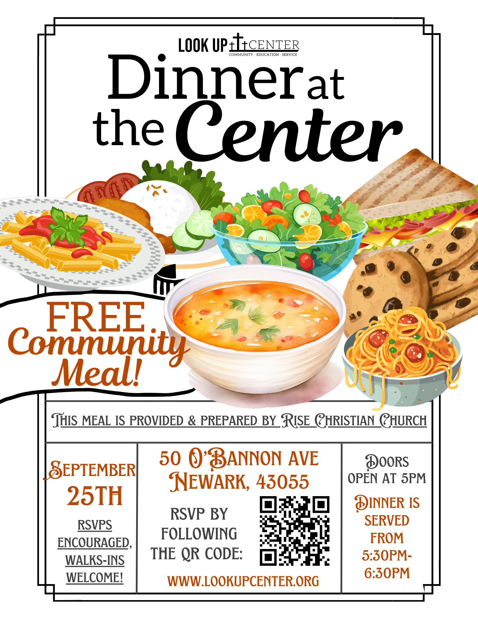 Come break bread with us for the Dinner at the Center! In partnership with Rise Christian Church, we are so excited about this next meal event that was a long-standing tradition for the Look Up Center.