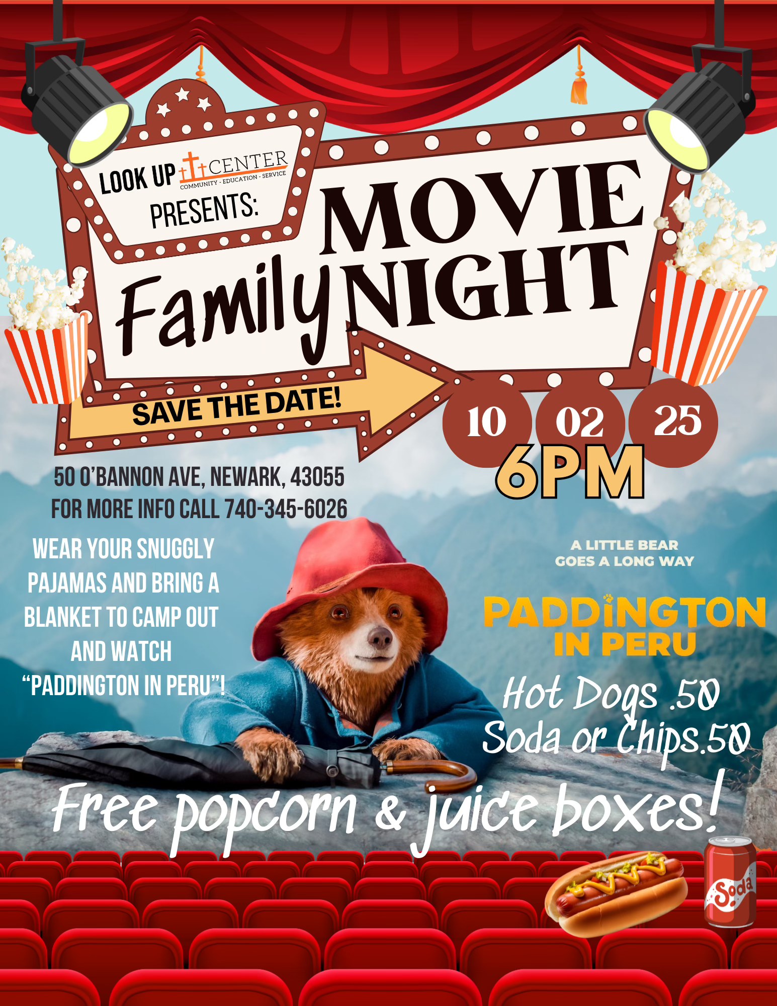 Family Movie Night is BACK at the Look Up Center! Join us on Thursday, October 2 at 6PM for a cozy evening watching Paddington in Peru!